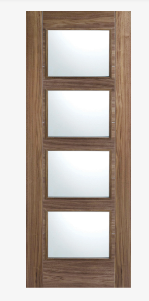 View full detailsDeanta Coventry Pre-Finished Walnut Glazed Internal Door - Minimalist 4 Panel with Clear GlassIlluminate your home with minimalist sophistication t...